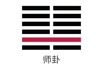 這個卦是異卦(下坎上坤)相疊。「師」指軍隊。坎為水、為險;坤為地、為順,喻寓兵於農。兵凶戰危,用兵乃聖人不得已而為之,但它可以順利無阻礙地解決矛盾,因為順乎形勢,師出有名,故能化凶為吉。