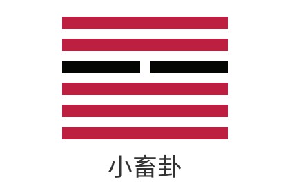 這個卦是異卦(下乾上巽)相疊,乾為天;巽為風。喻風調雨順,穀物滋長,故卦名小畜(蓄)。力量有限,須待發展到一定程度,才可大有作為。