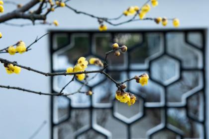 四貼春字畫:家家在門上張貼迎春的字畫字和春字有關畫有腊梅迎春之類